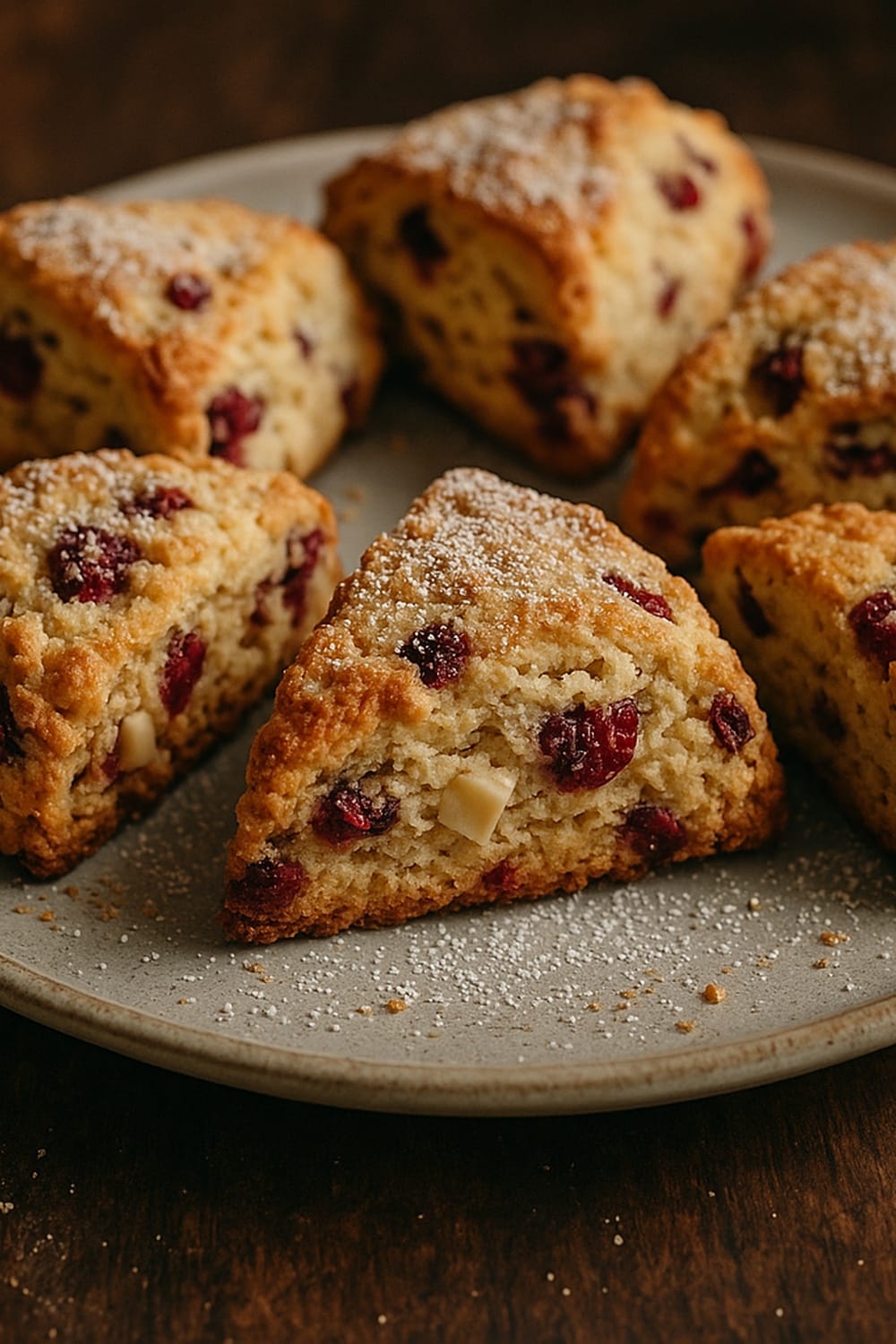 Bake tender white chocolate cranberry scones in under 30 minutes with this easy recipe featuring sweet dried cranberries and creamy white chocolate chips.