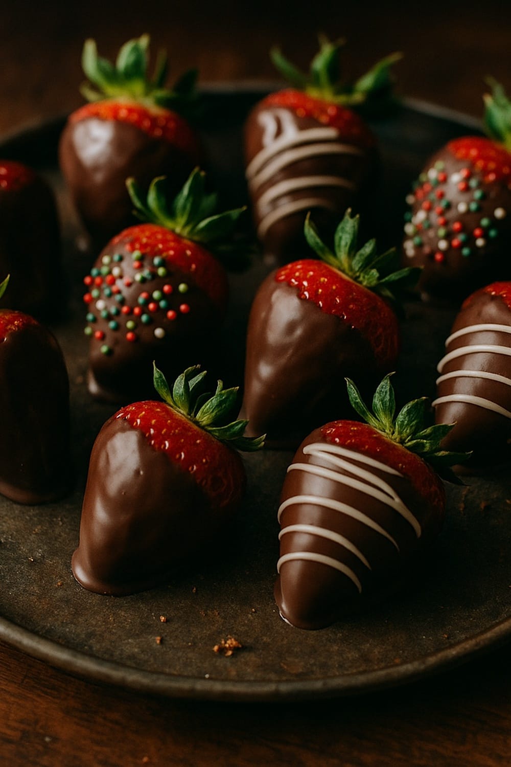 Learn how to make chocolate covered strawberries with holiday sprinkles, a quick festive dessert perfect for Christmas parties and edible gifts.