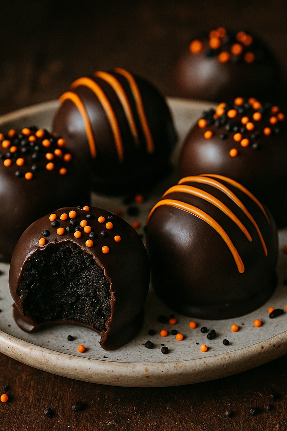 Make festive Halloween Oreo Truffles with crushed cookies, cream cheese and candy melts—no baking required, perfect for spooky parties.