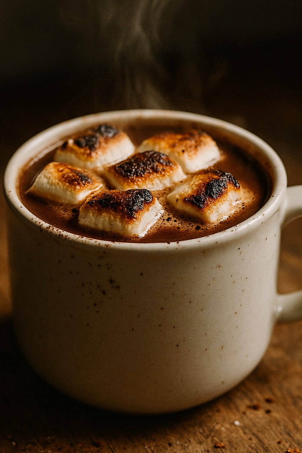 Cozy up with this easy toasted marshmallow hot cocoa made with rich cocoa, milk and broiled marshmallows, perfect for winter nights.