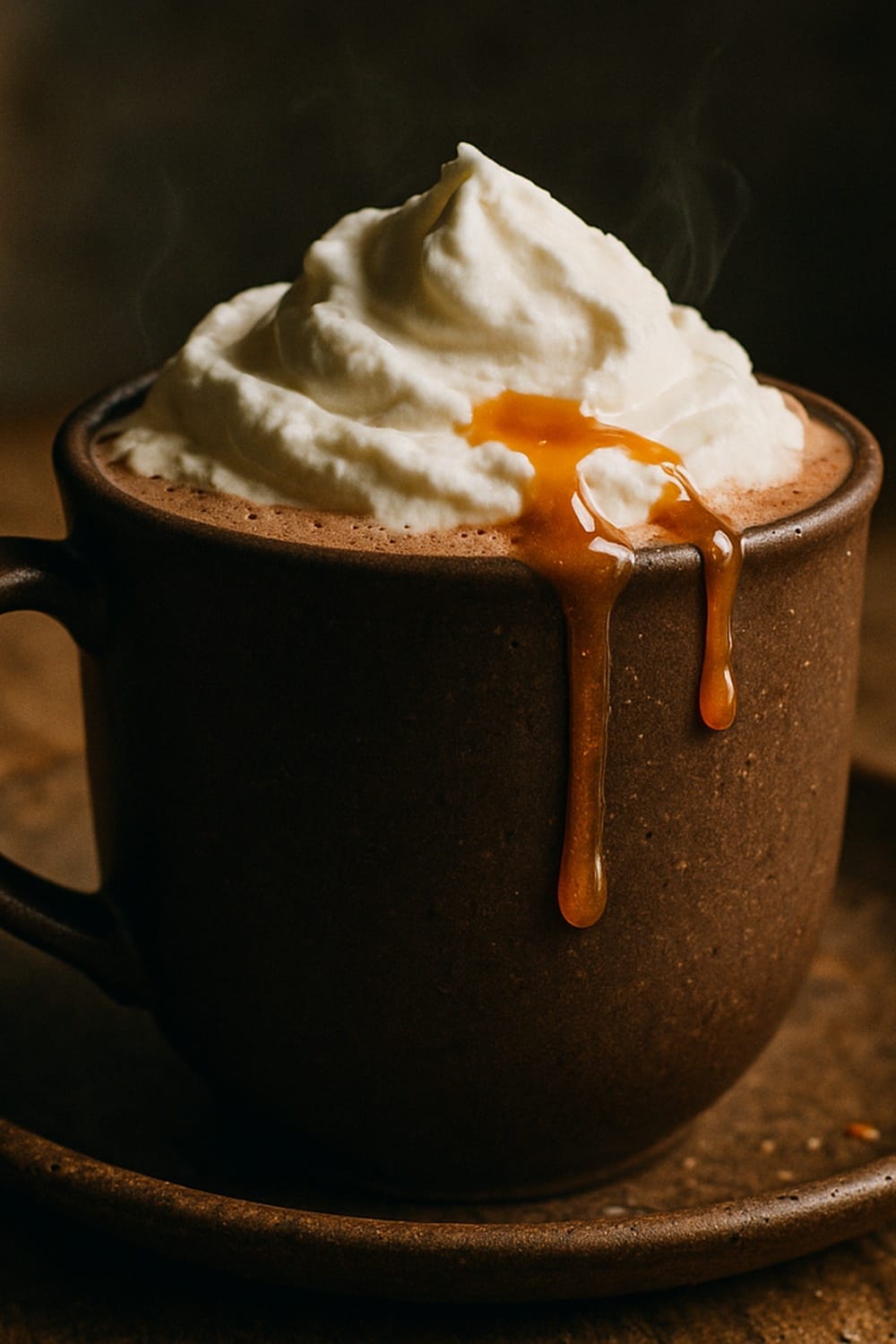 Cozy up with this caramel hot chocolate recipe topped with fluffy whipped cream; easy stovetop drink ready in 10 minutes using cocoa, milk and caramel.