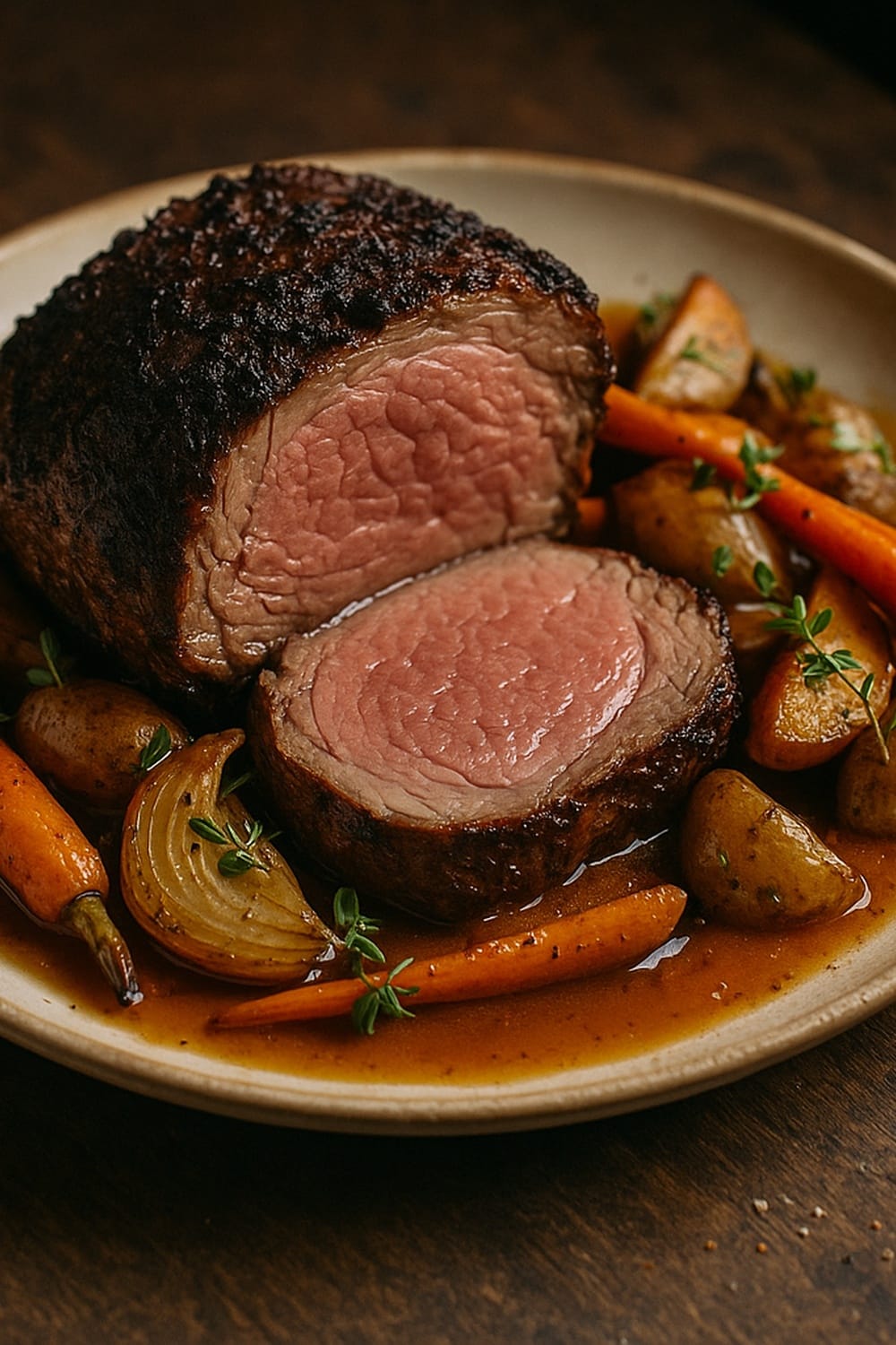 Tender roast beef with pan gravy recipe, step-by-step instructions and roasting tips for a classic Sunday dinner.
