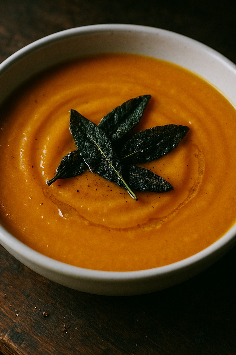 Make pumpkin soup with crispy sage for a comforting autumn meal; creamy texture, aromatic herbs, ready in under an hour.