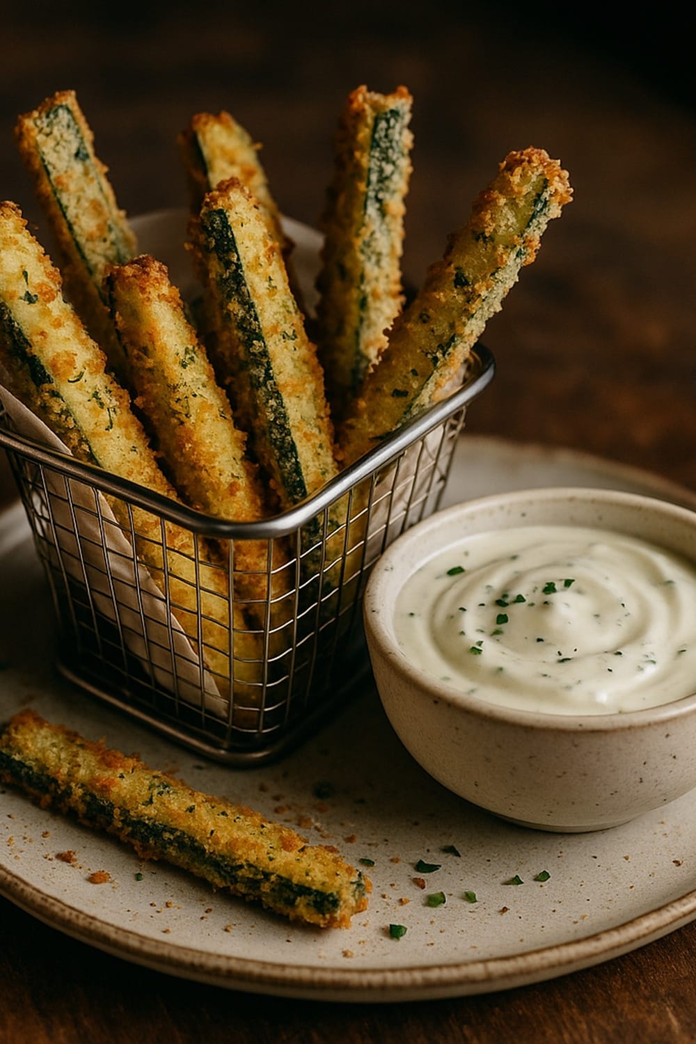 Crispy baked zucchini fries coated in parmesan and garlic make a quick low-carb side or appetizer ready in 30 minutes.