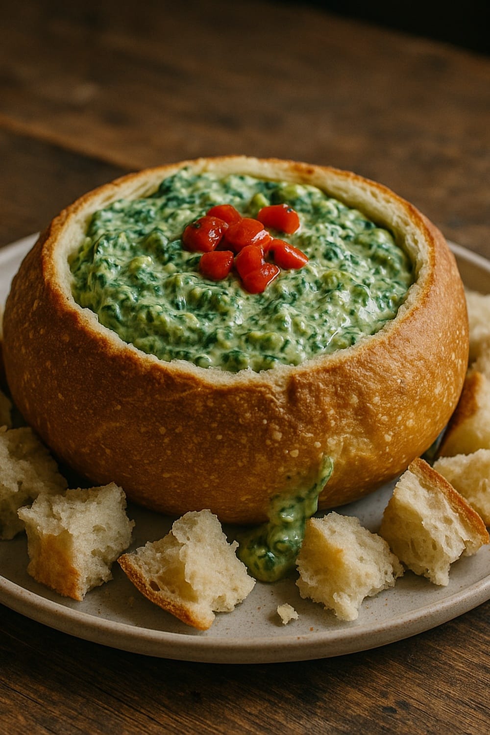 Spinach Dip Bread Bowl with Water Chestnuts and Creamy Ranch
